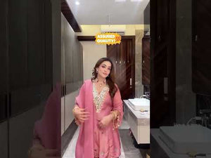 Vendor:Hansh CoutureElegant Organza Silk Embroidered Kurti Palazzo Set with Long Koti for Festive and Wedding Wear