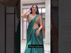 Vendor:Hansh CoutureEmerald Green Ready-to-Wear Mirror Work Saree with Unstitched Blouse