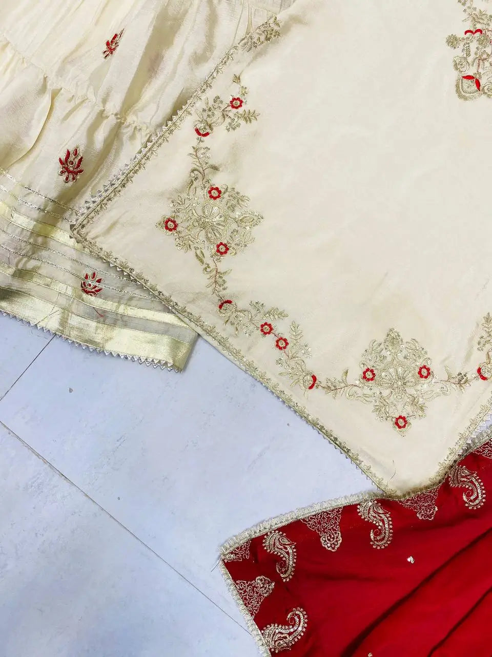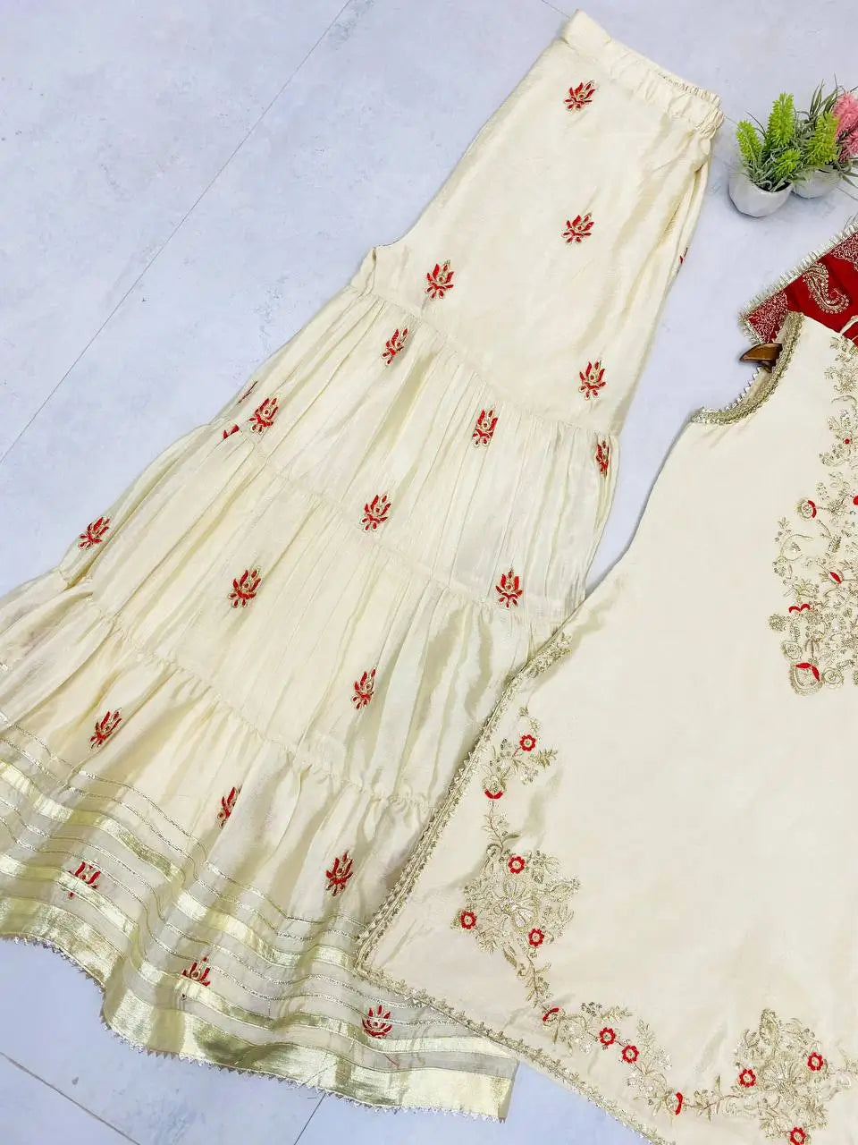 Upgrade your festive wardrobe with this luxurious Butterfly Net Embroidered Top Plazzo Set, designed to give a graceful and contemporary ethnic look. The sheer butterfly net top features intricate sequence embroidery on both front and back, paired with a soft micro inner blouse for comfort and coverage.