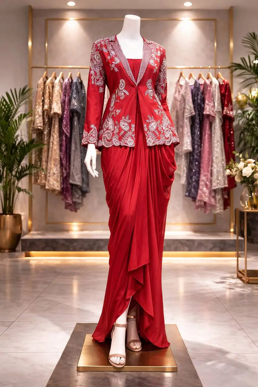 Ideal for weddings, festive celebrations, engagement ceremonies, receptions, and special gatherings, this outfit offers elegance, comfort, and a distinctive modern ethnic appeal.