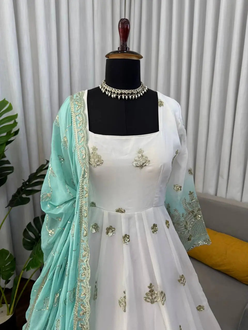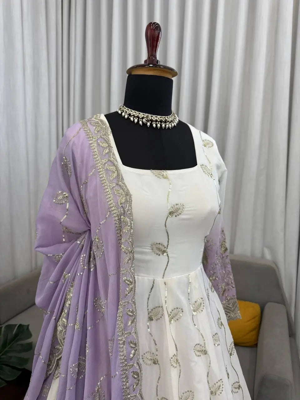 Perfect for festive celebrations, family functions, cultural events, office gatherings, and small wedding ceremonies, this ready to ship Anarkali set blends tradition with modern practicality.