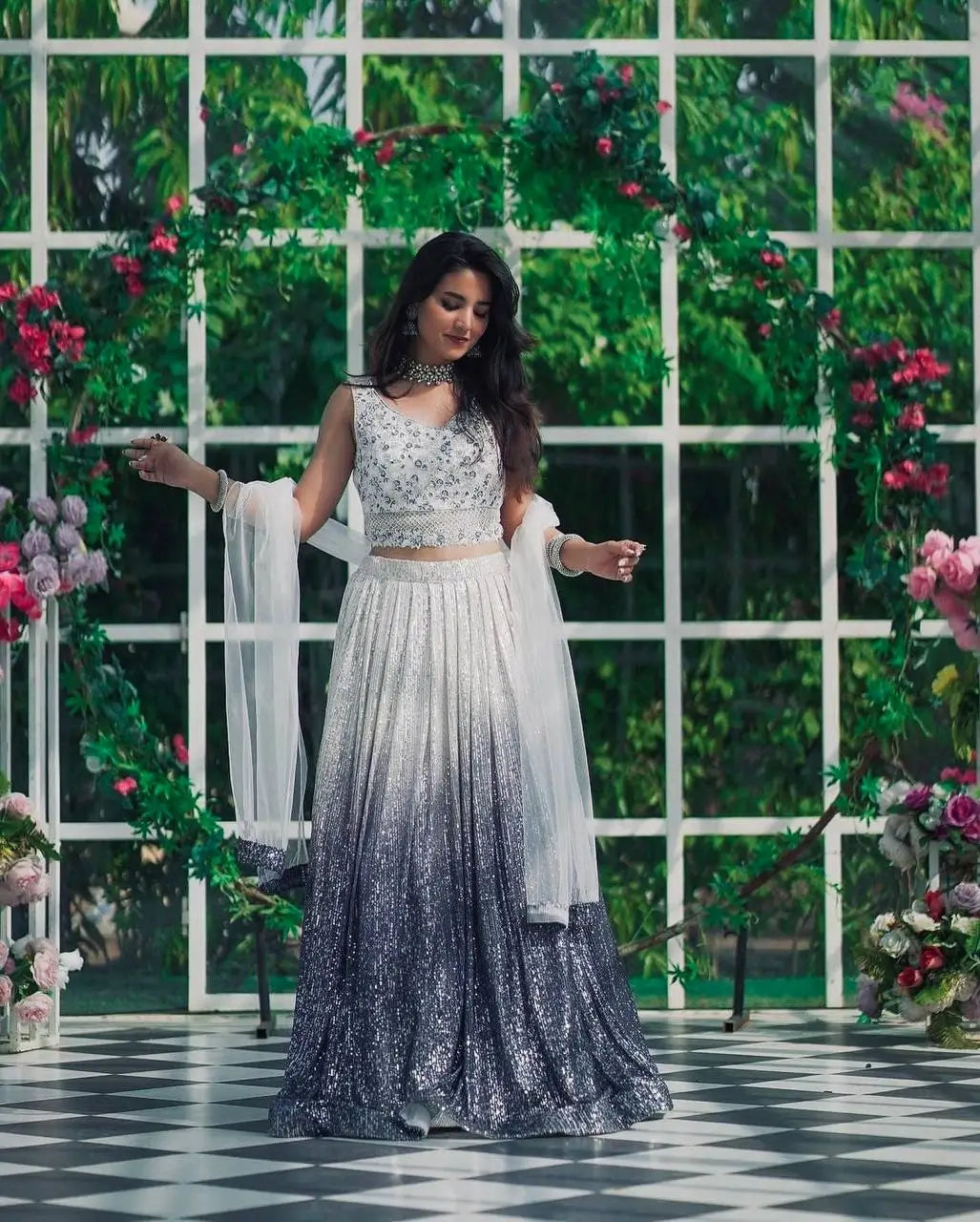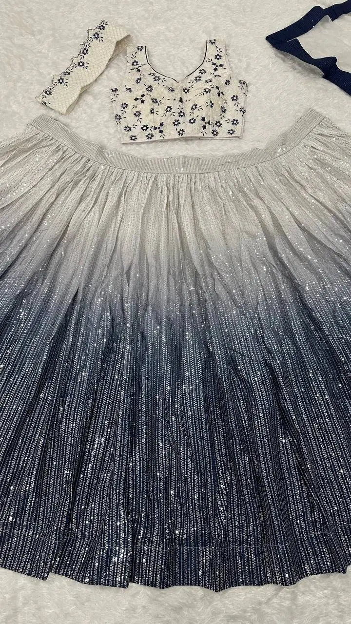 • Shaded georgette silk lehenga with sequins embellishment