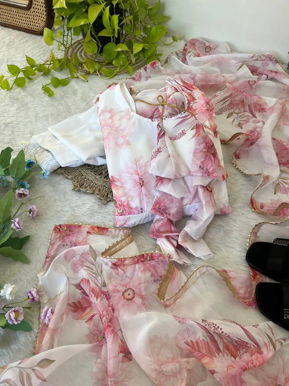 Floral Organza Taby Silk Anarkali Gown Set with Dupatta