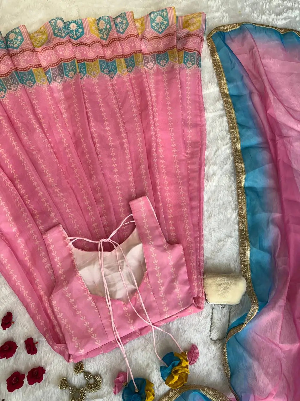Coordinated 2-meter georgette dupatta with designer lace border