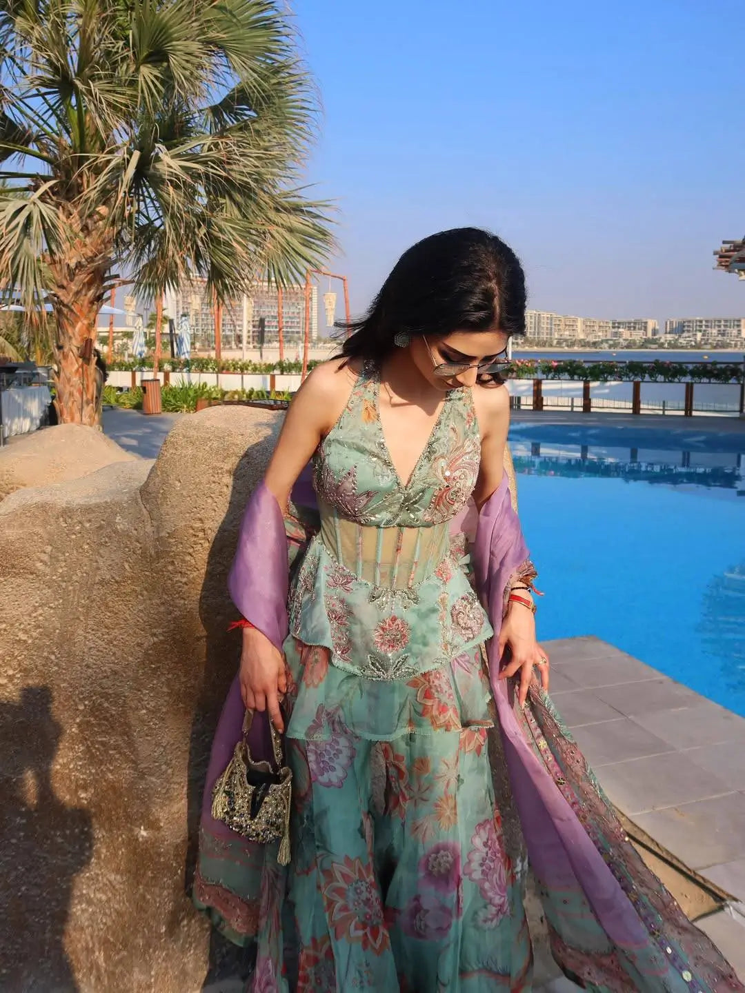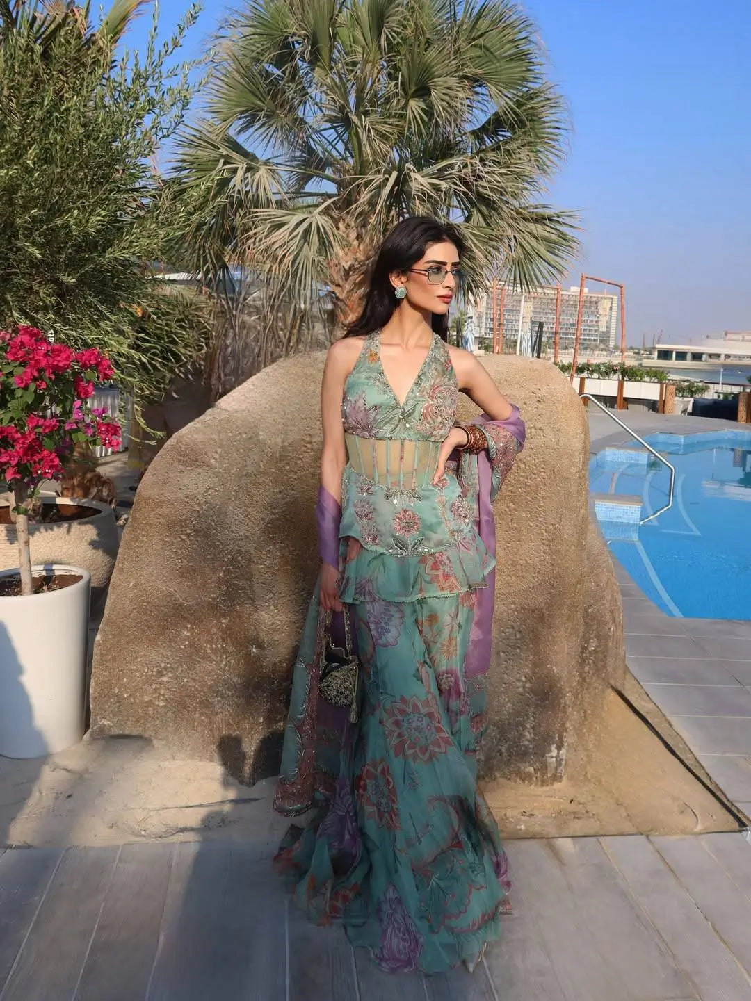 Step into effortless elegance with this beautifully crafted Mint Bloom Designer Sharara Set, designed to make you stand out at every celebration. Made from premium fox georgette fabric, this ensemble combines graceful flow with lightweight comfort, making it perfect for long festive gatherings and special occasions.