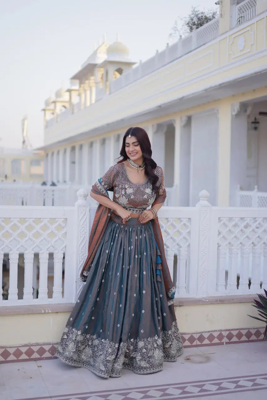 The unstitched blouse, crafted from matching Fendi Silk with heavy sequins and zari thread embroidery, allows you to customize the fit and neckline as per your style preference. Completing the set is a beautifully embroidered Fendi Silk dupatta with designer lace border and a length of 2.25 meters, adding a refined finishing touch. Ideal for weddings, receptions, engagement ceremonies, festive functions, and traditional celebrations, this lehenga set blends sophistication with comfort effortlessly.