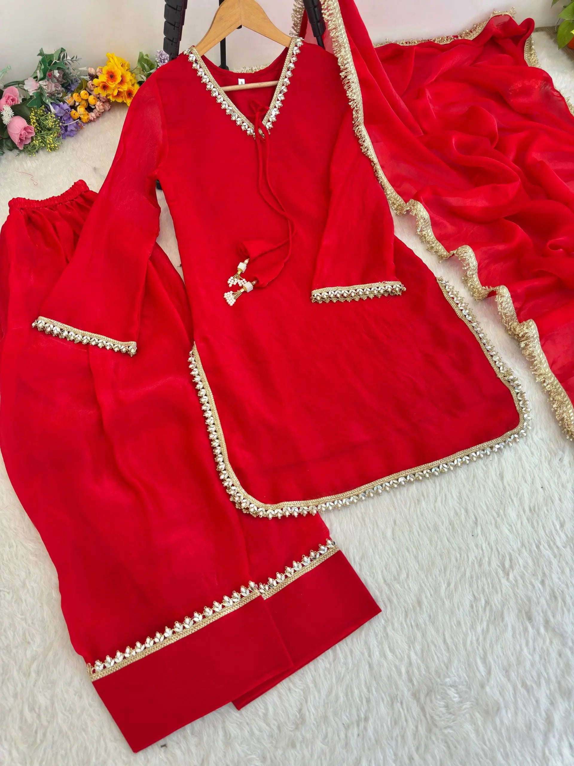 Perfect for wedding functions, festive celebrations, family gatherings, engagement ceremonies, and traditional events, this satin silk suit set blends comfort, elegance, and timeless craftsmanship.
