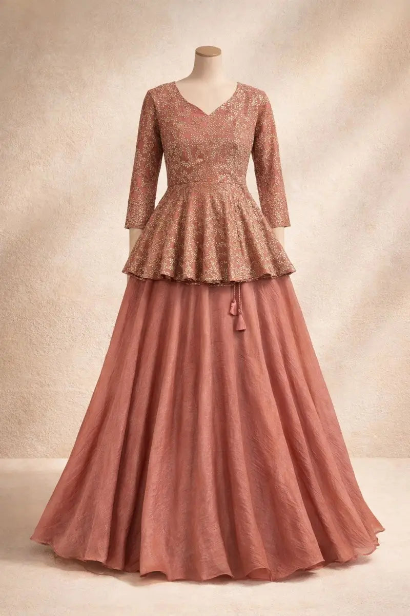 Designer Crunchy Silk Embroidered Peplum Top with Lehenga