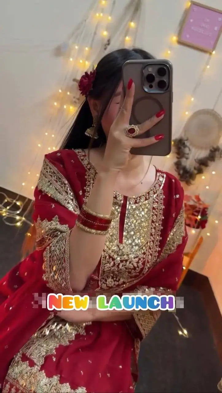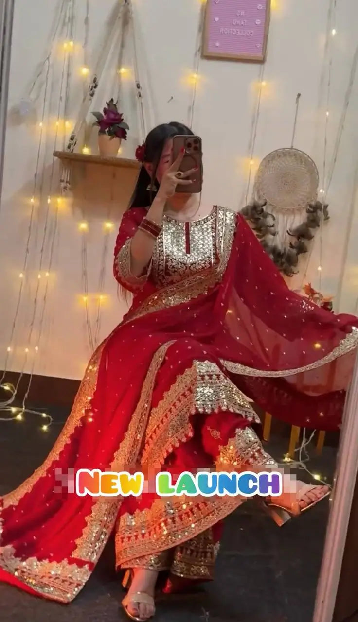 Make a statement of timeless elegance with this exquisite designer palazzo and dupatta set, crafted from luxurious heavy fox georgette fabric. The top features rich embroidery with intricate 3 mm sequin work and fancy sleeves, creating a sophisticated festive look. Fully stitched and lined with soft micro cotton, the top offers a perfect balance of comfort and style. The matching palazzo, made from premium faux georgette, carries equally beautiful embroidery and sequin work, enhancing the outfit’s grandeur. Completing the ensemble is a 2.25-meter embroidered dupatta with a four-side lace border, adding a regal touch. Ideal for weddings, festive events, and parties, this set perfectly combines traditional craftsmanship with modern flair.