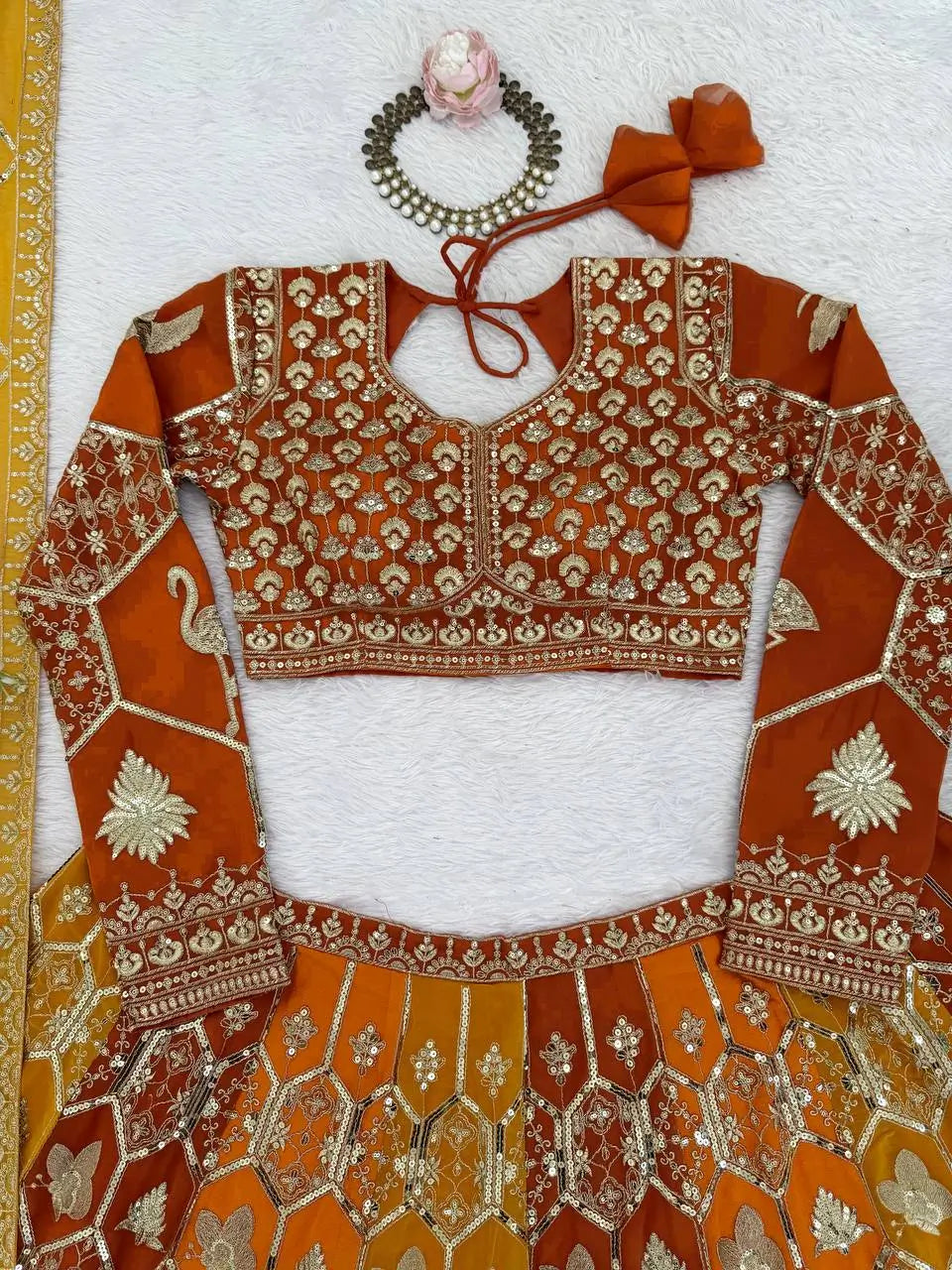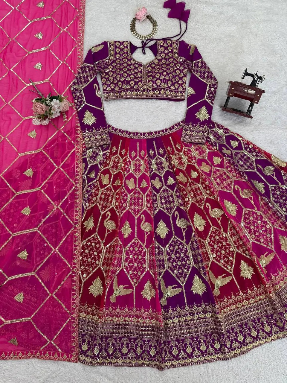 • Premium faux georgette lehenga with intricate thread and sequence embroidery