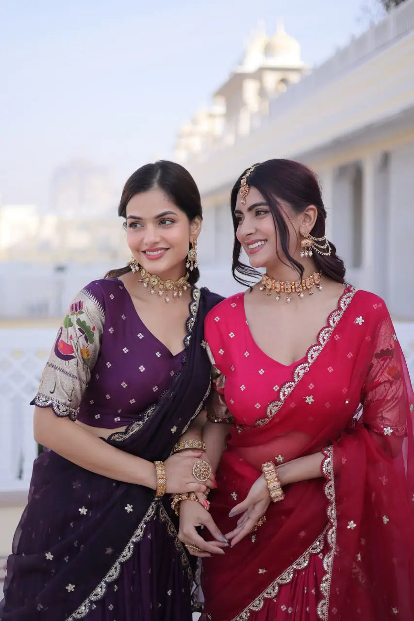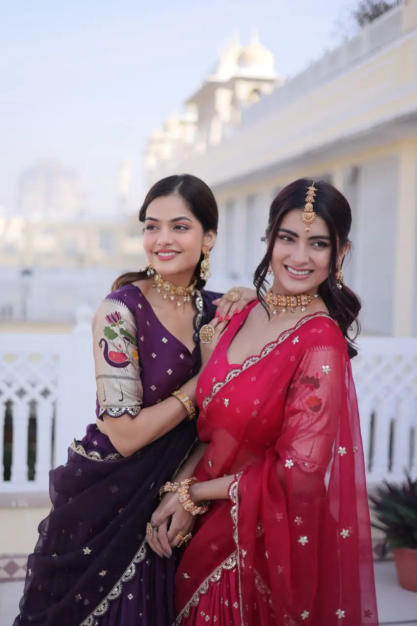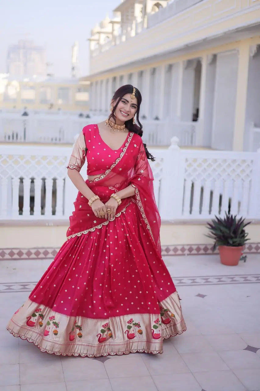 • Premium dola silk lehenga with Meena weaving