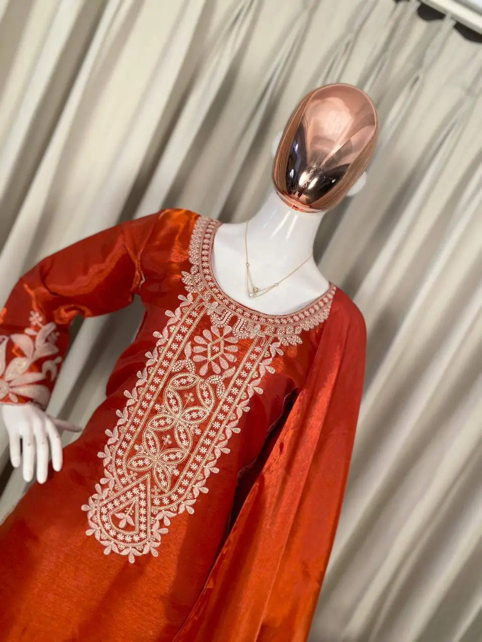 • Soft organza silk fabric with elegant sequin embroidery