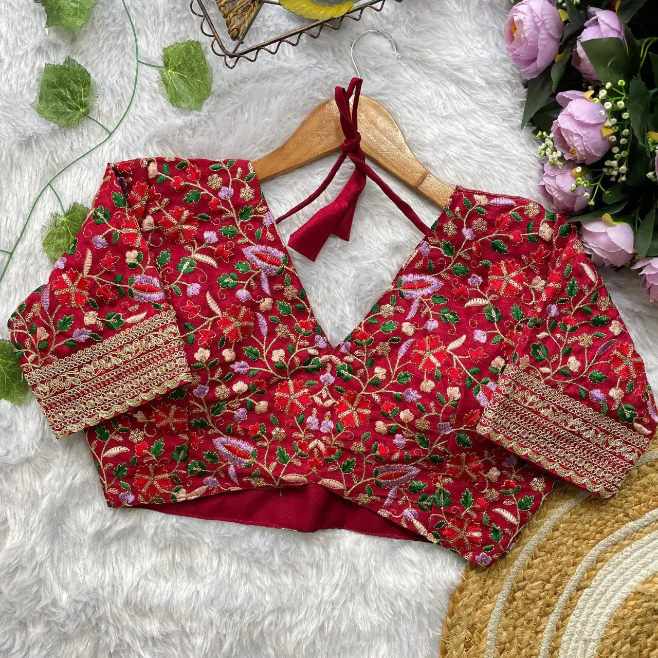 • Fully stitched blouse with multicolour embroidery