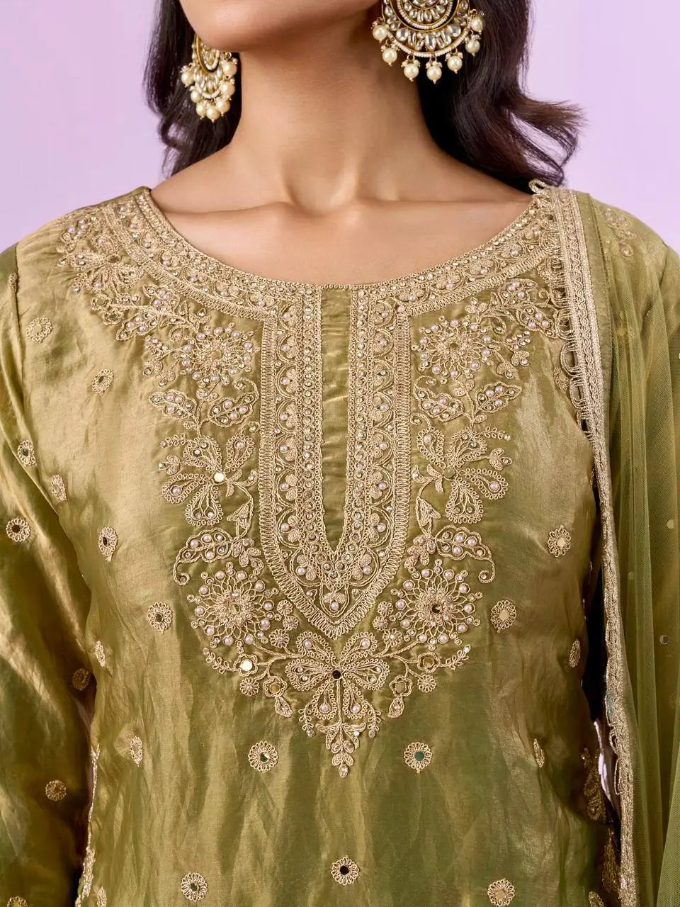 Premium Fandy silk kurta with embroidery, sequence, and diamond hand work