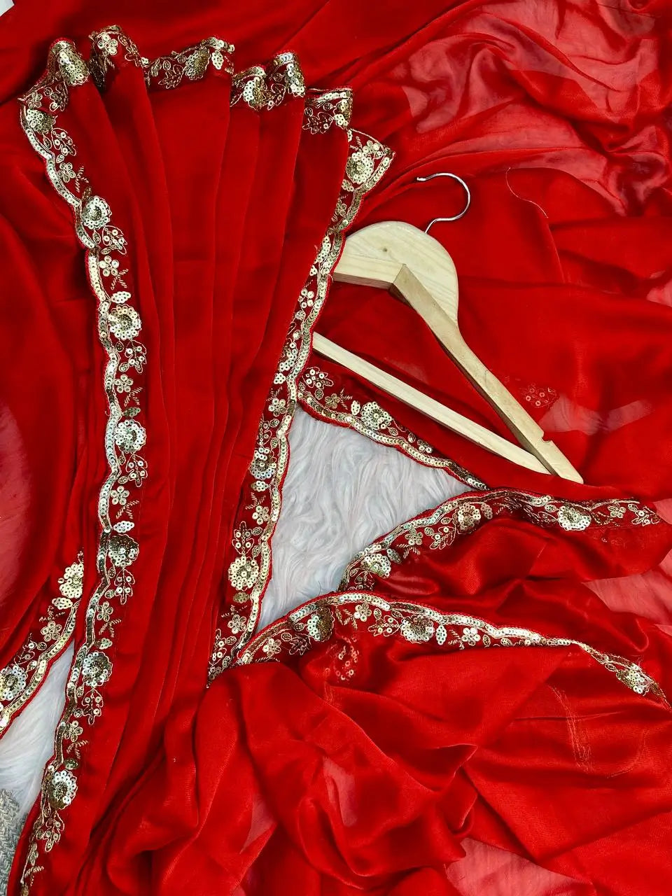 Add timeless charm to your festive wardrobe with this elegant fancy saree crafted from soft rangoli silk. The smooth texture and graceful drape make it a comfortable yet luxurious choice for celebrations and special occasions. The saree is enhanced with a beautifully designed sequence embroidery lace border that adds subtle shimmer and refined detailing along the edges.