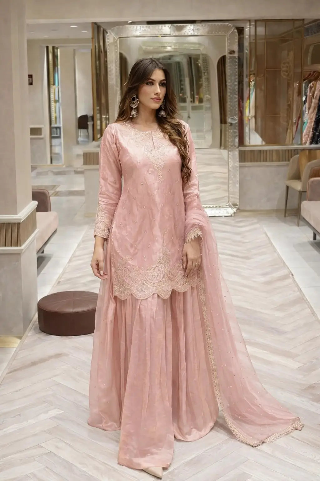 Step into elegance with this premium Lavender Fandy Silk Kurti Palazzo Set, designed to give you a graceful festive look with a modern silhouette. Made from rich and smooth Fandy silk fabric, this 3-piece set features intricate embroidery with sequin and diamond handwork, giving it a luxurious boutique finish perfect for celebrations.