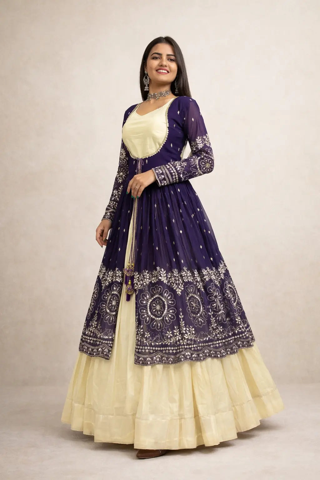 This outfit is perfect for Navratri, Garba Nights, Wedding Functions, Festive Parties, Sangeet, Engagement, and Traditional Celebrations, while still giving you a stylish Indo-western vibe.