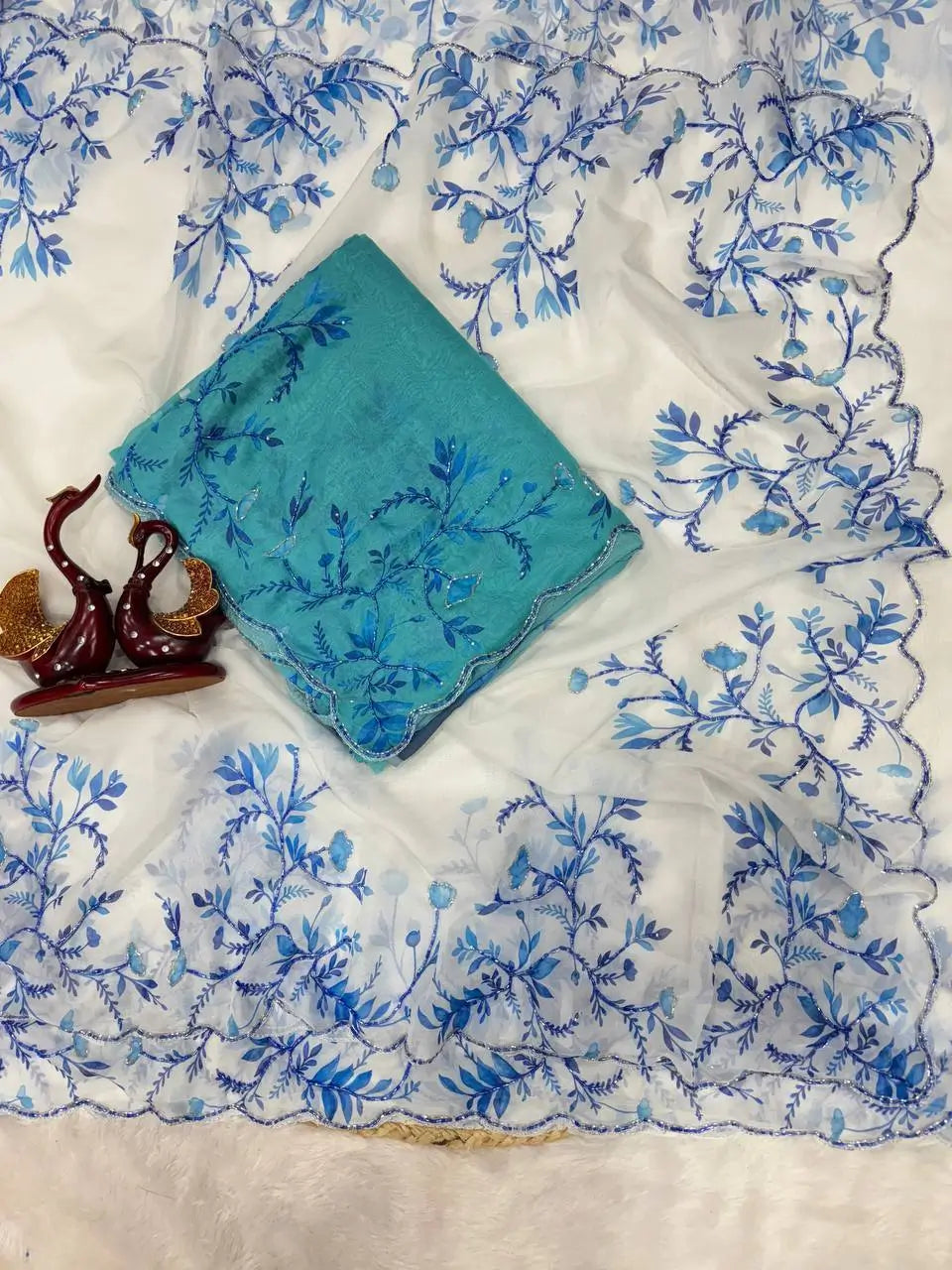 • Elegant floral print with beads and katdana handwork
