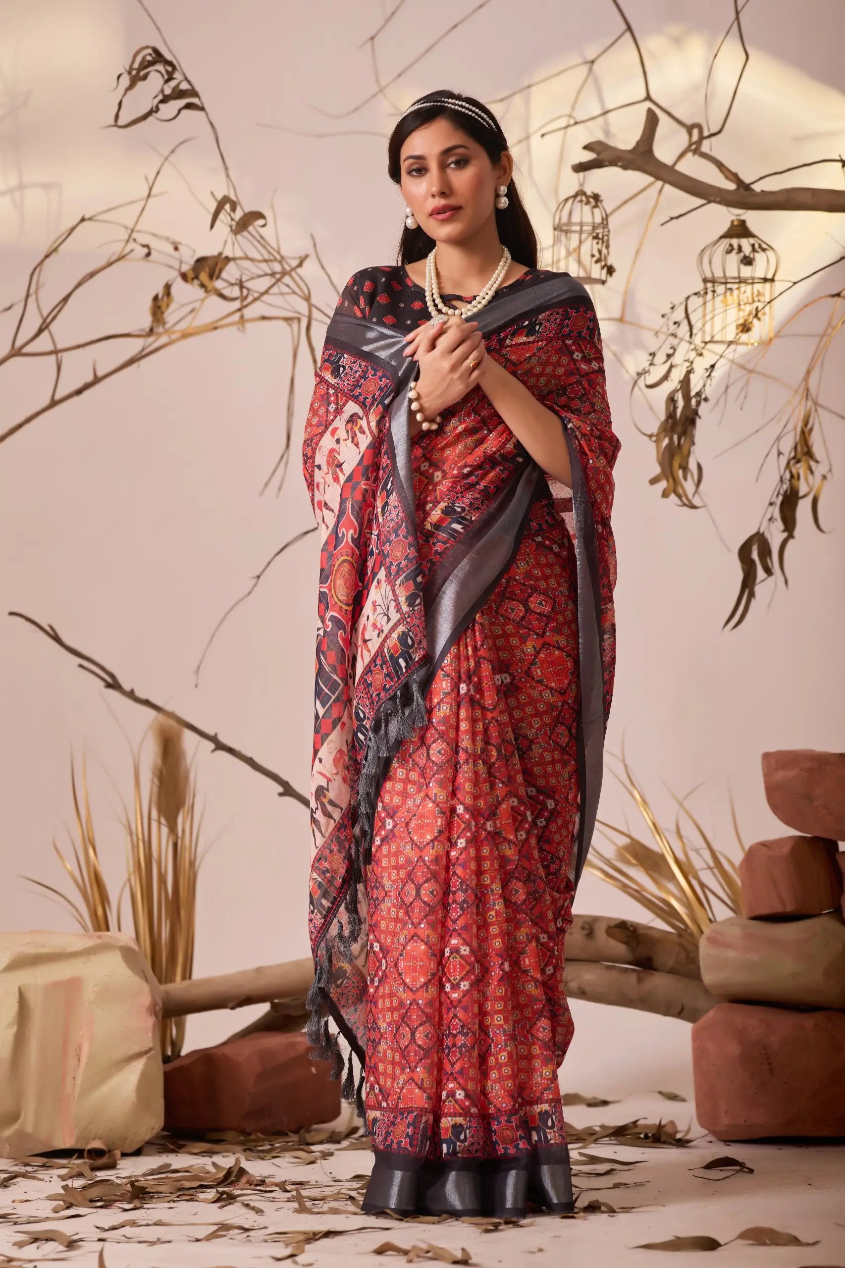 • Intricately woven golden zari border