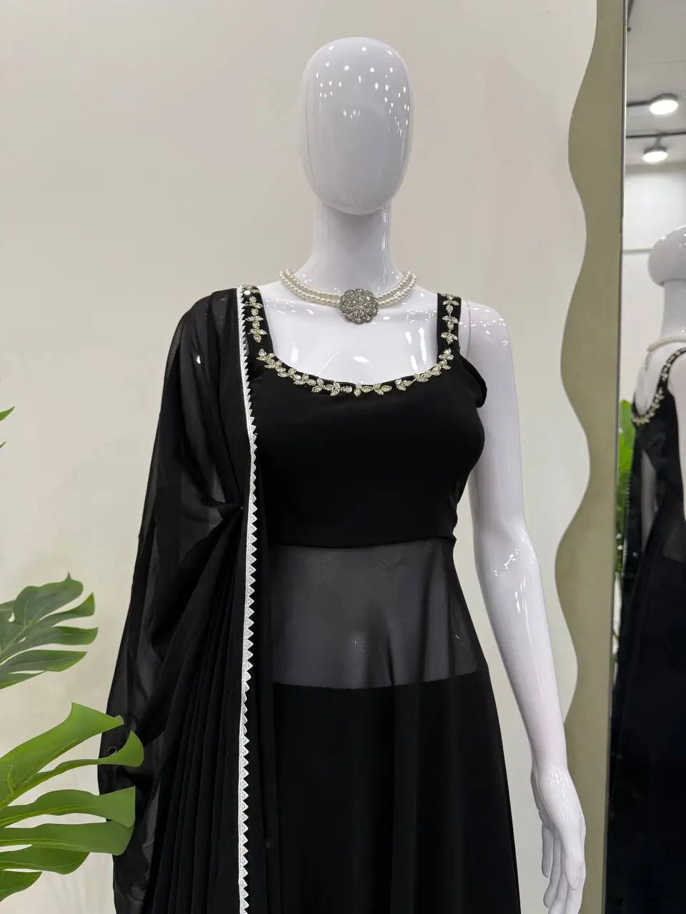 Fabric (Top, Palazzo, Dupatta): Premium fox georgette with micro lining.