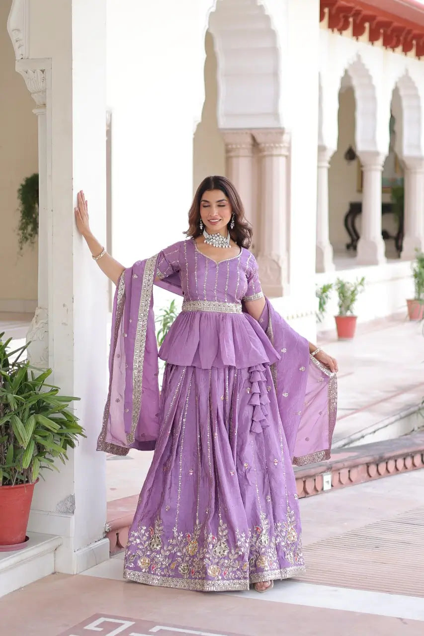 This elegant lehenga set is crafted from premium gold crush fabric, featuring beautifully detailed multi thread embroidery enhanced with zari and sequence work for a rich festive appeal. The full-stitched lehenga offers a graceful three meter flair with canvas patta for added structure and movement. It includes a soft cotton inner for comfortable wear and comes with a convenient side chain and dori-latkan closure. The matching blouse is fully stitched in coordinated gold crush fabric, designed with detailed embroidery and a stylish designer neckline, allowing easy alteration between sizes 38 to 44. The set is completed with a beautifully embroidered dupatta adorned with sequence work and a designer lace border. Perfect for weddings, festive occasions and celebrations, this outfit blends traditional artistry with refined elegance.