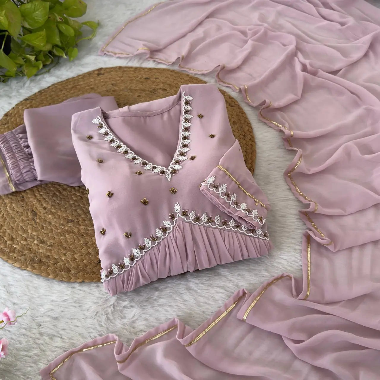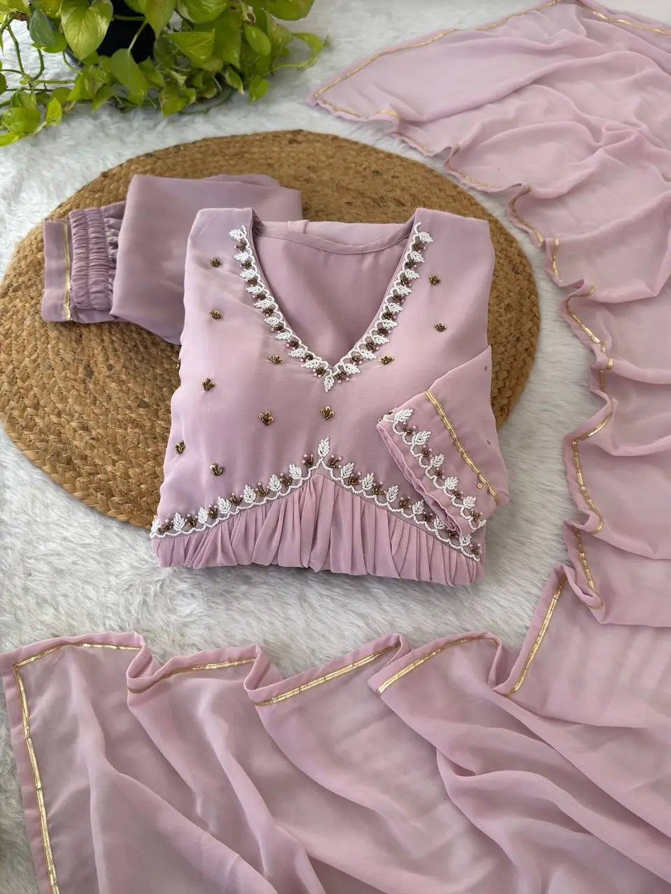 Mauve Fox Georgette Anarkali Gown Set with Dupatta