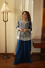 Midnight Blue Georgette Sequins Embroidered Kurti Palazzo Set for Wedding & Festive Wear