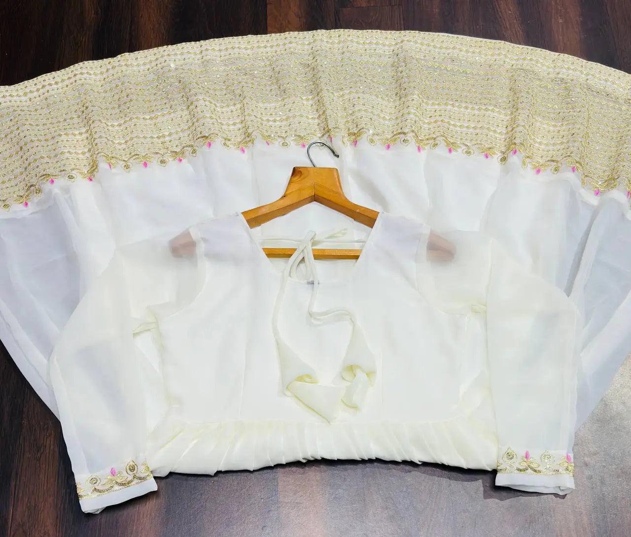 • Premium georgette fabric with heavy sequins and zari embroidery