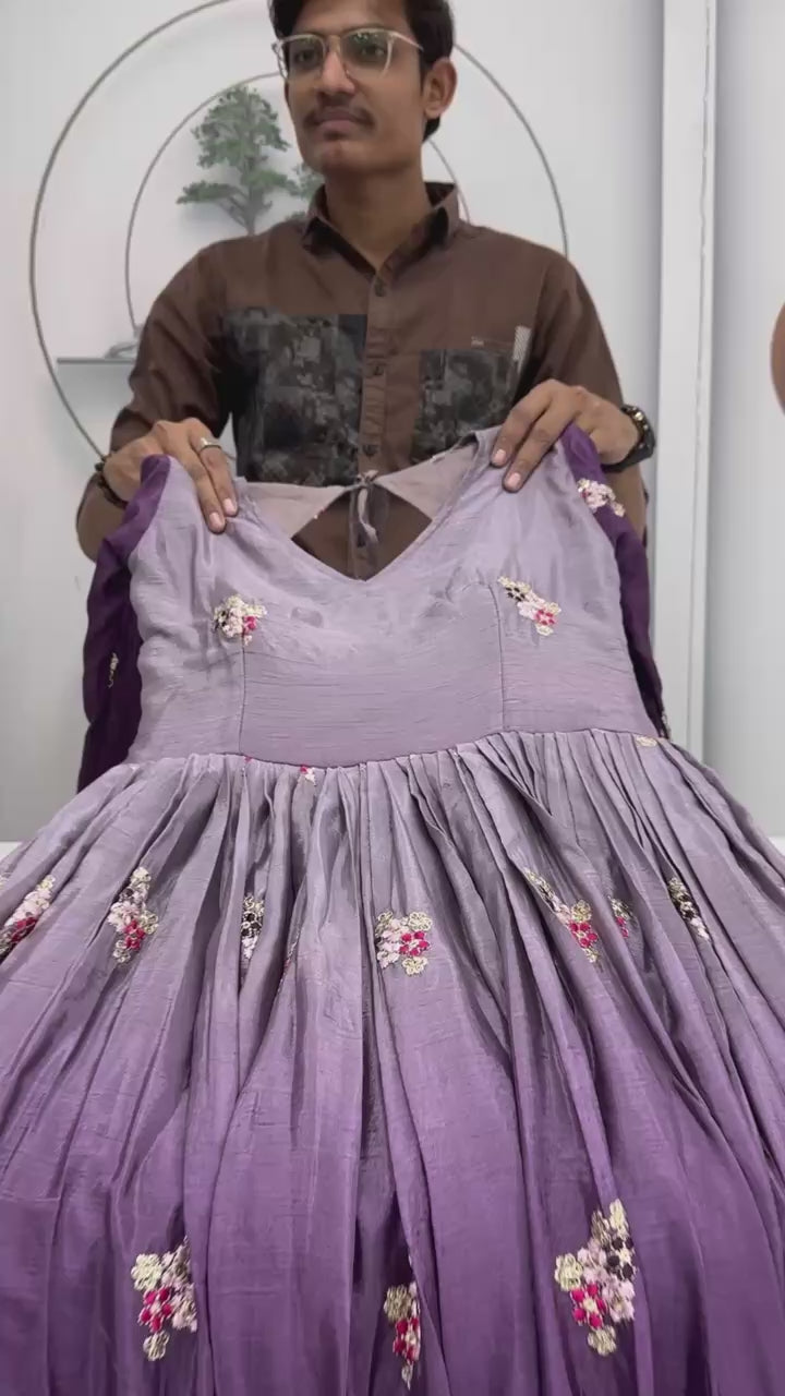 Make a grand style statement with this exquisite embroidered gown and dupatta set, crafted from luxurious heavy chinon fabric. The gown features intricate embroidery and elegant sequence work that enhances its festive appeal. With a voluminous 3-meter flair, it offers a graceful and flowy silhouette, while the soft heavy micro cotton inner ensures lasting comfort. The matching embroidered dupatta adds a touch of sophistication and completes the ensemble beautifully. Fully stitched and ready to wear, this designer gown set is ideal for weddings, receptions, festive celebrations, and elegant evening events. A premium-quality outfit that effortlessly combines traditional craftsmanship with contemporary elegance.