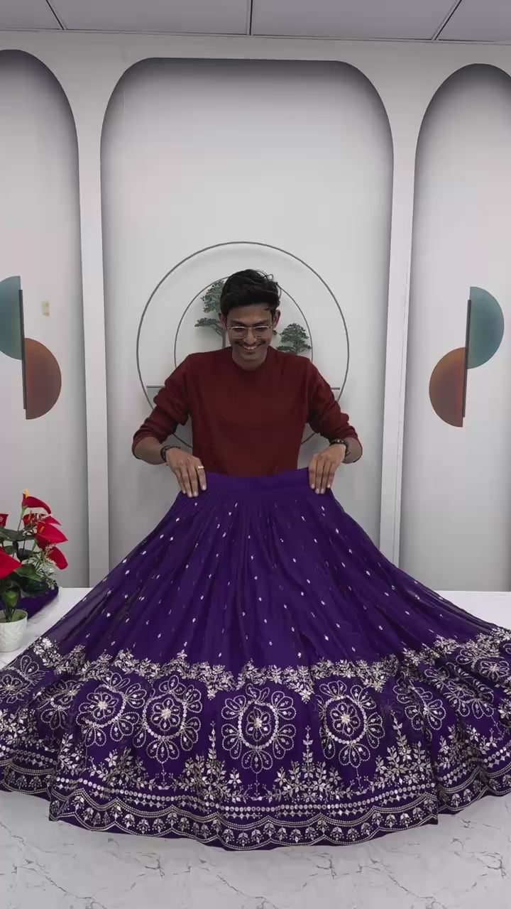 Step into timeless elegance with this exquisite embroidered georgette lehenga choli set, designed to make you shine at weddings and festive celebrations. Crafted from luxurious heavy fox georgette fabric, the choli features intricate embroidery with 7 mm sequin work that adds a radiant shimmer. It comes fully stitched with a soft heavy micro cotton inner for comfort and structure. The matching lehenga is beautifully detailed with heavy embroidery and sequin embellishments, featuring a voluminous 3.5-meter flair and a sturdy canvas patta for a grand silhouette. Completing the look is an embroidered fox georgette dupatta that perfectly complements the outfit’s regal charm. This premium-quality ensemble is perfect for weddings, receptions, and festive occasions.
