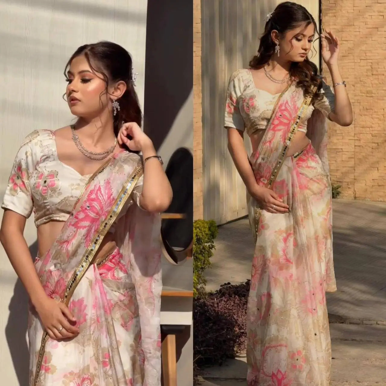 This saree is the perfect blend of simplicity and festive charm, making it an ideal choice for both day and evening events.