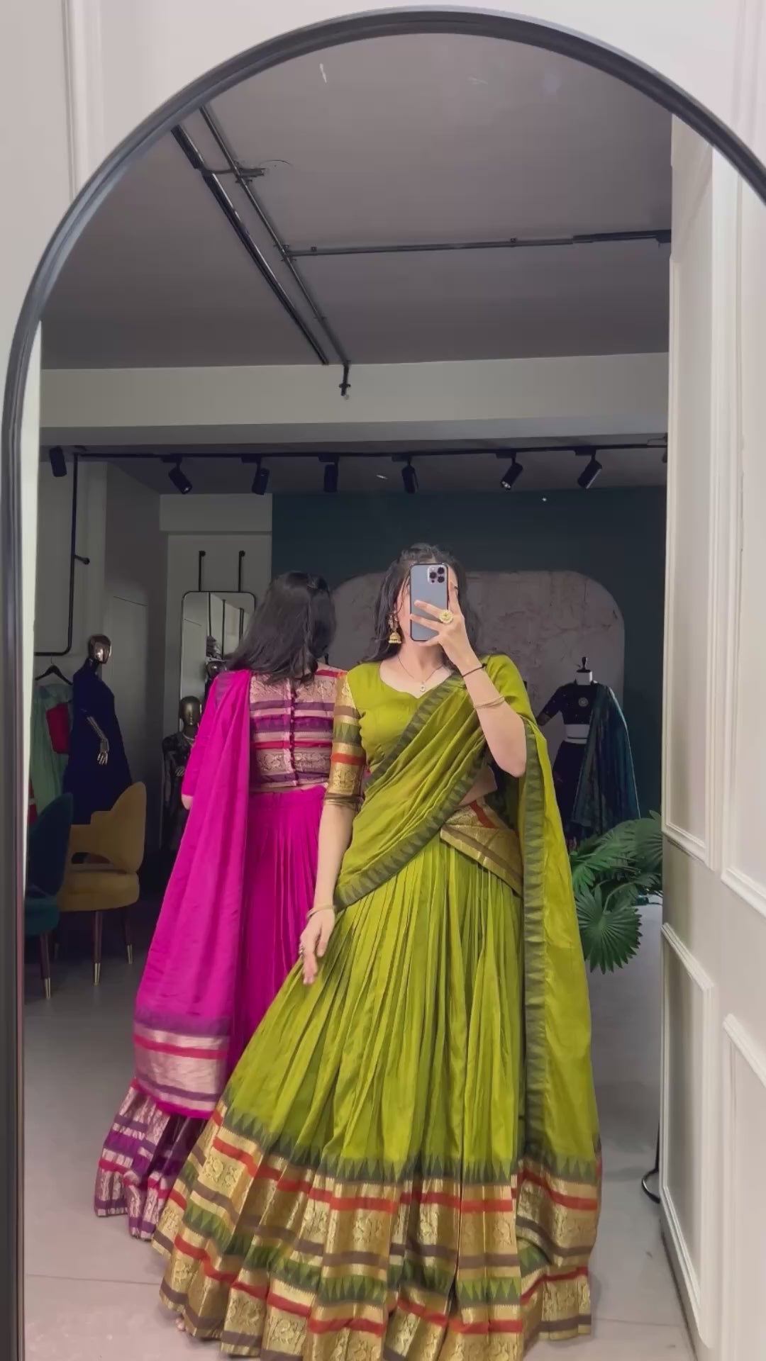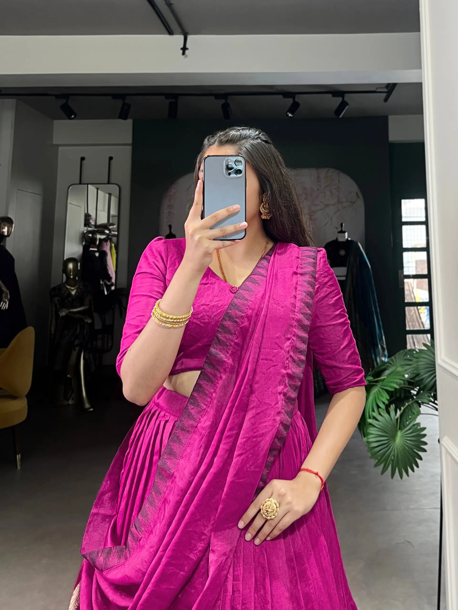 Pure Chanderi Zari Weaving Border Lehenga Set