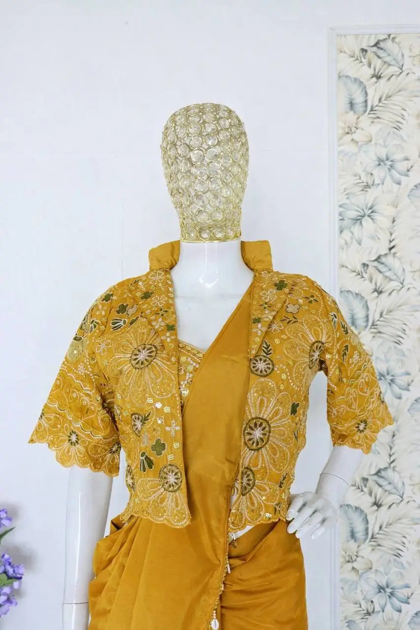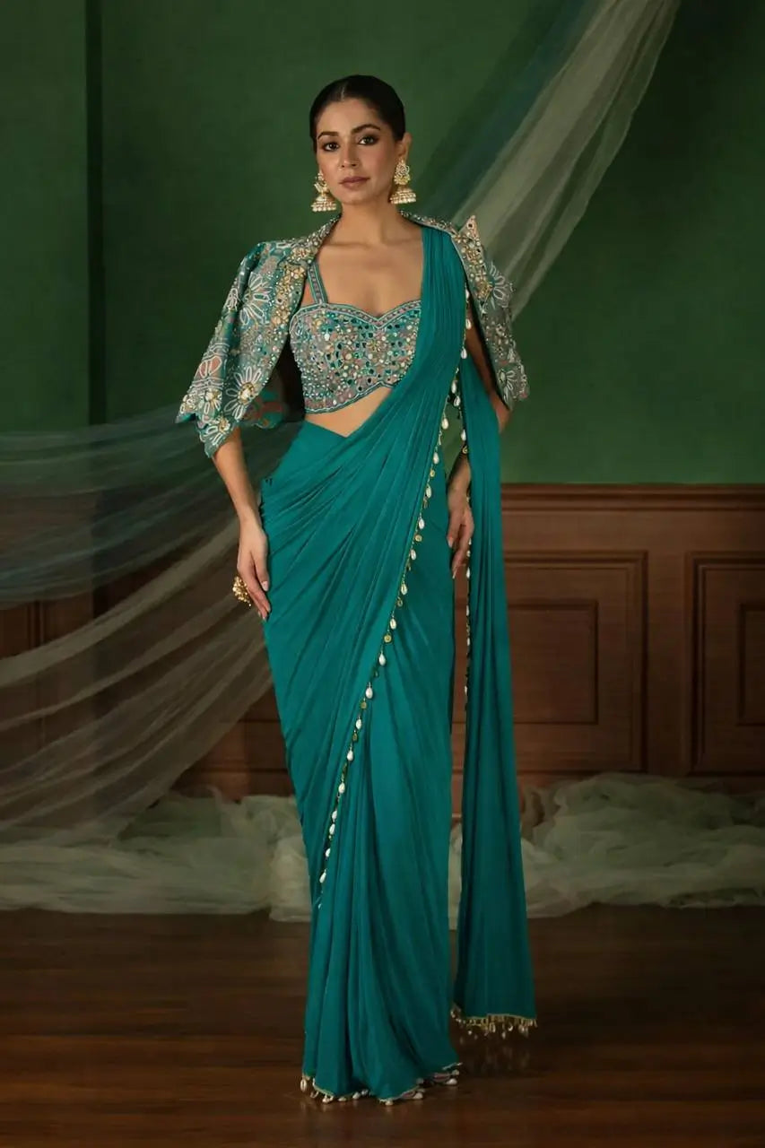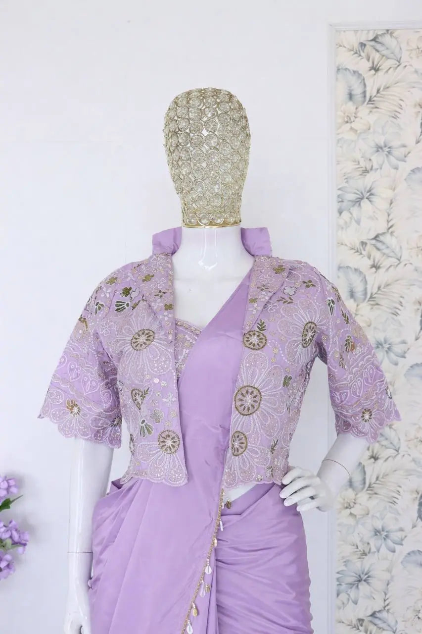 Ready to Wear Crepe Silk Saree with Embroidered Jacket and Blouse