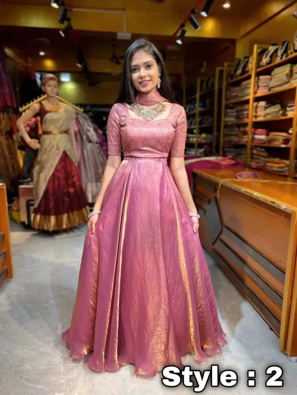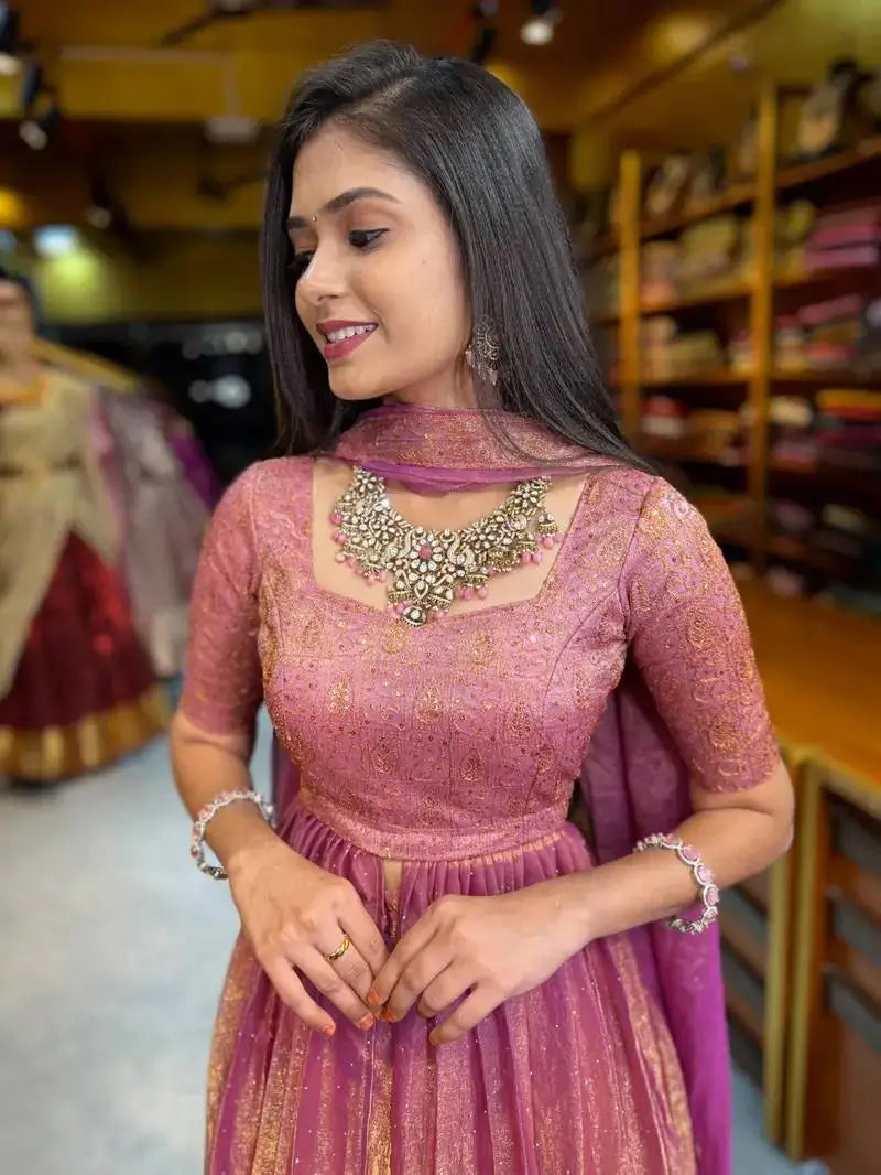 Make every celebration memorable with this Rose Gold Two Tone Silk Lehenga Set, designed to deliver elegance with a contemporary touch. Crafted from heavy two tone Fandy silk fabric, this outfit showcases a rich sheen and luxurious finish that enhances your festive look instantly.
