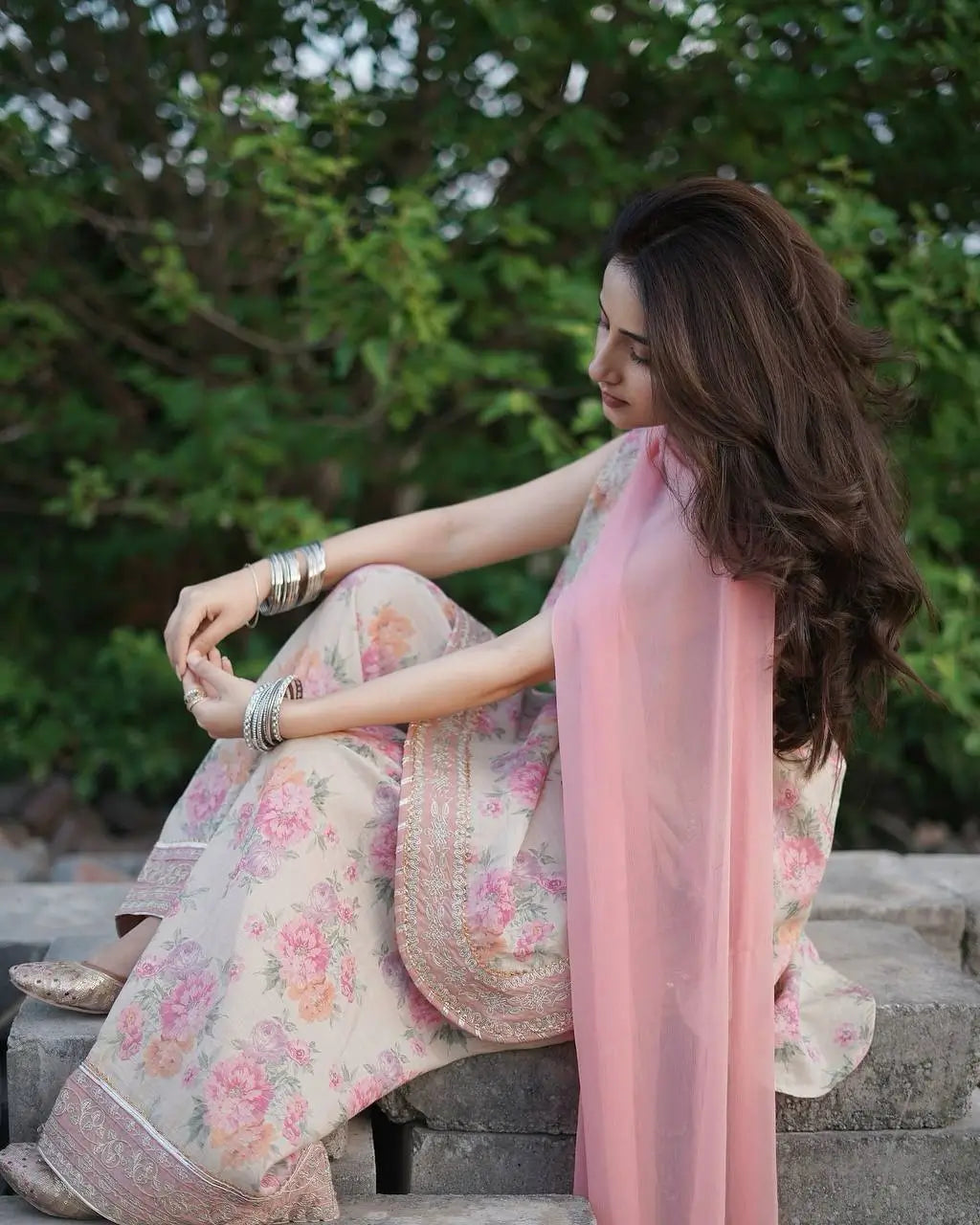 • Top Fabric: Sifon georgette with digital print & sequins embroidery