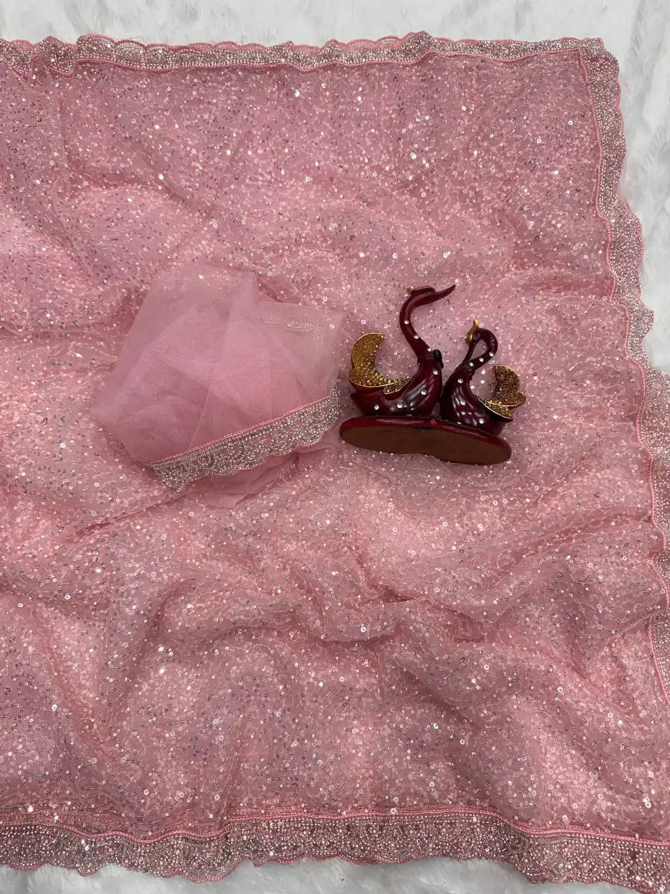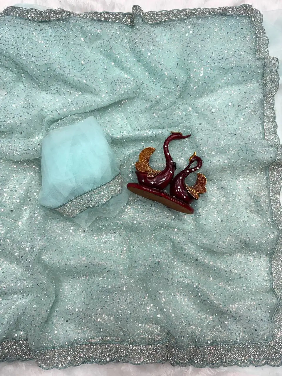 Soft Net Sequins & Beads Embroidered Designer Saree