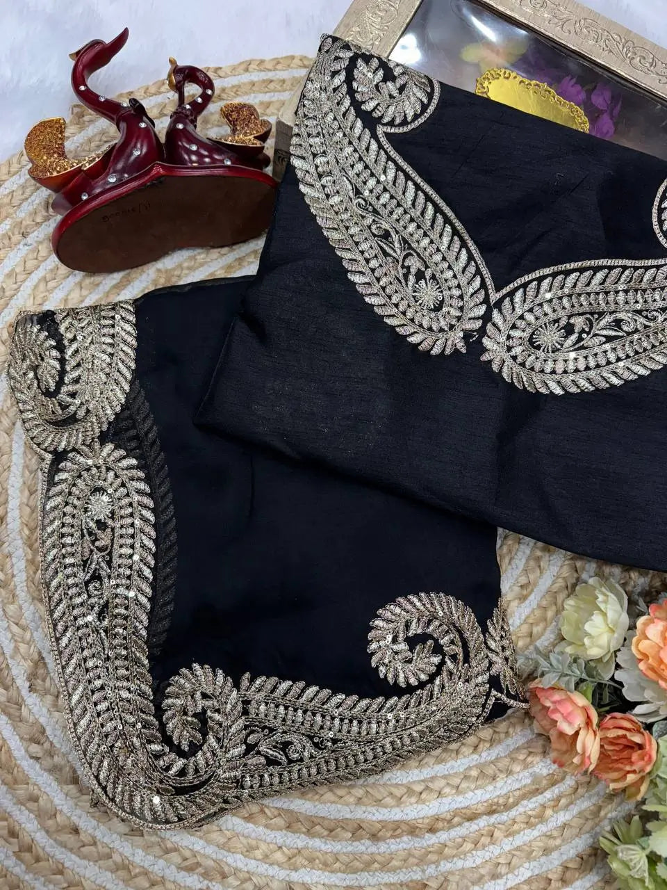 It comes with a matching blouse made from Banglori fabric, enhanced with sequins and zari embroidery work to perfectly complement the saree. The coordinated blouse piece allows you to customize stitching as per your preferred style and fit.