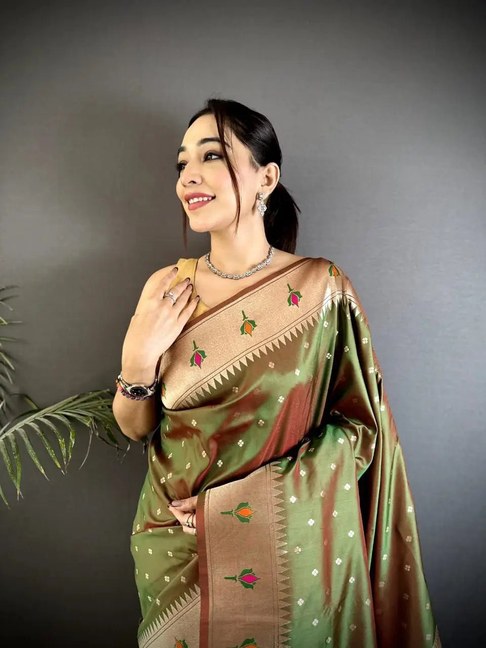 • Richly designed pallu with a festive finish
