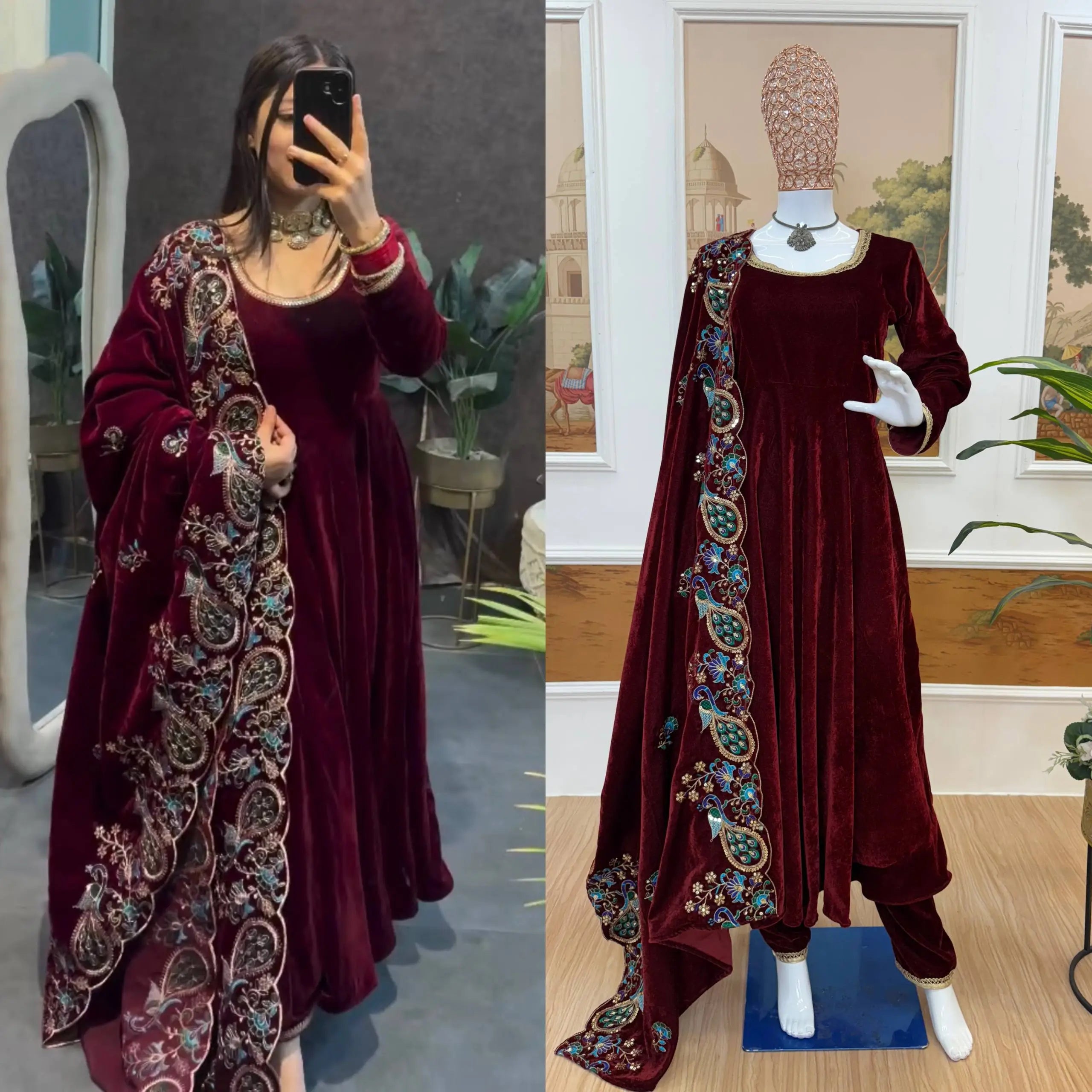 Premium 9000 velvet kurta with elegant four meter flair